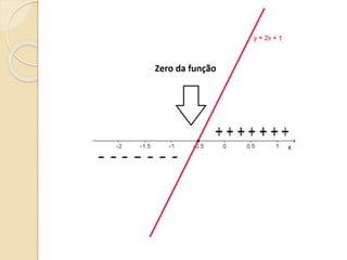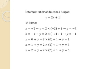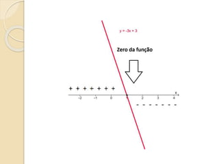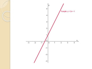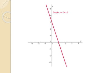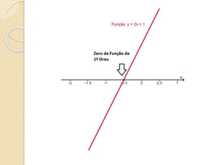 Este documento discute as funções do primeiro grau, incluindo como escrever equações de funções lineares, determinar seus coeficientes angular e linear, plotar gráficos, calcular raízes e estudar os sinais. Recomenda assistir a um vídeo e usar o programa Geogebra para explorar conceitos interativos de geometria e álgebra relacionados a estas funções.