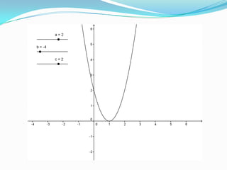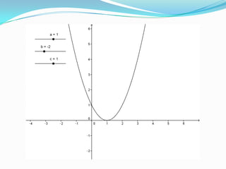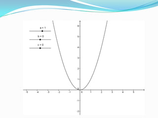 O documento descreve uma série de aulas sobre funções quadráticas. O professor começa apresentando a definição de função quadrática e exemplos. Nas aulas seguintes, ele ensina como esboçar os gráficos usando o software Geogebra, propõe exercícios e discute como distinguir os diferentes tipos de gráficos.
