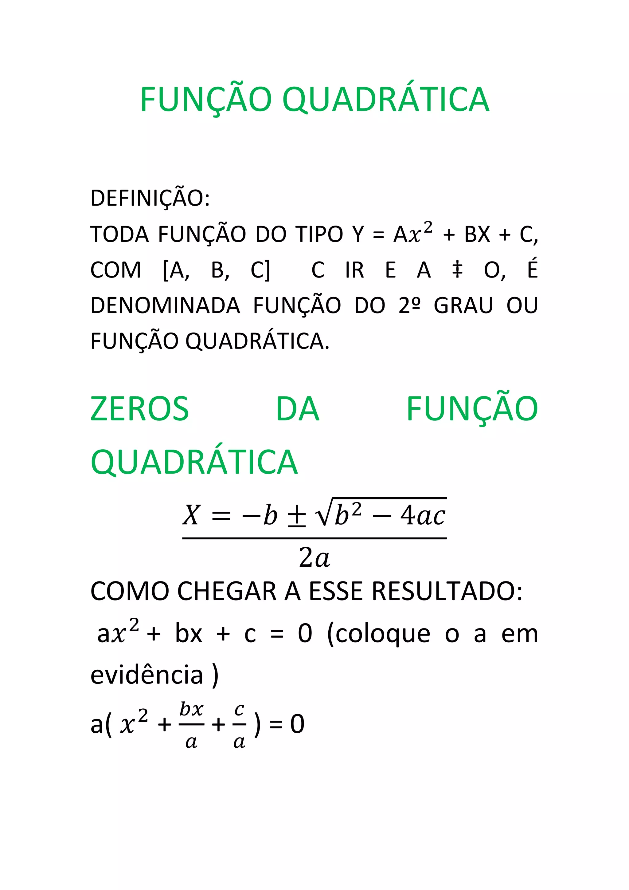 DENOMINADA FUNÇÃO DO 2º GRAU OU