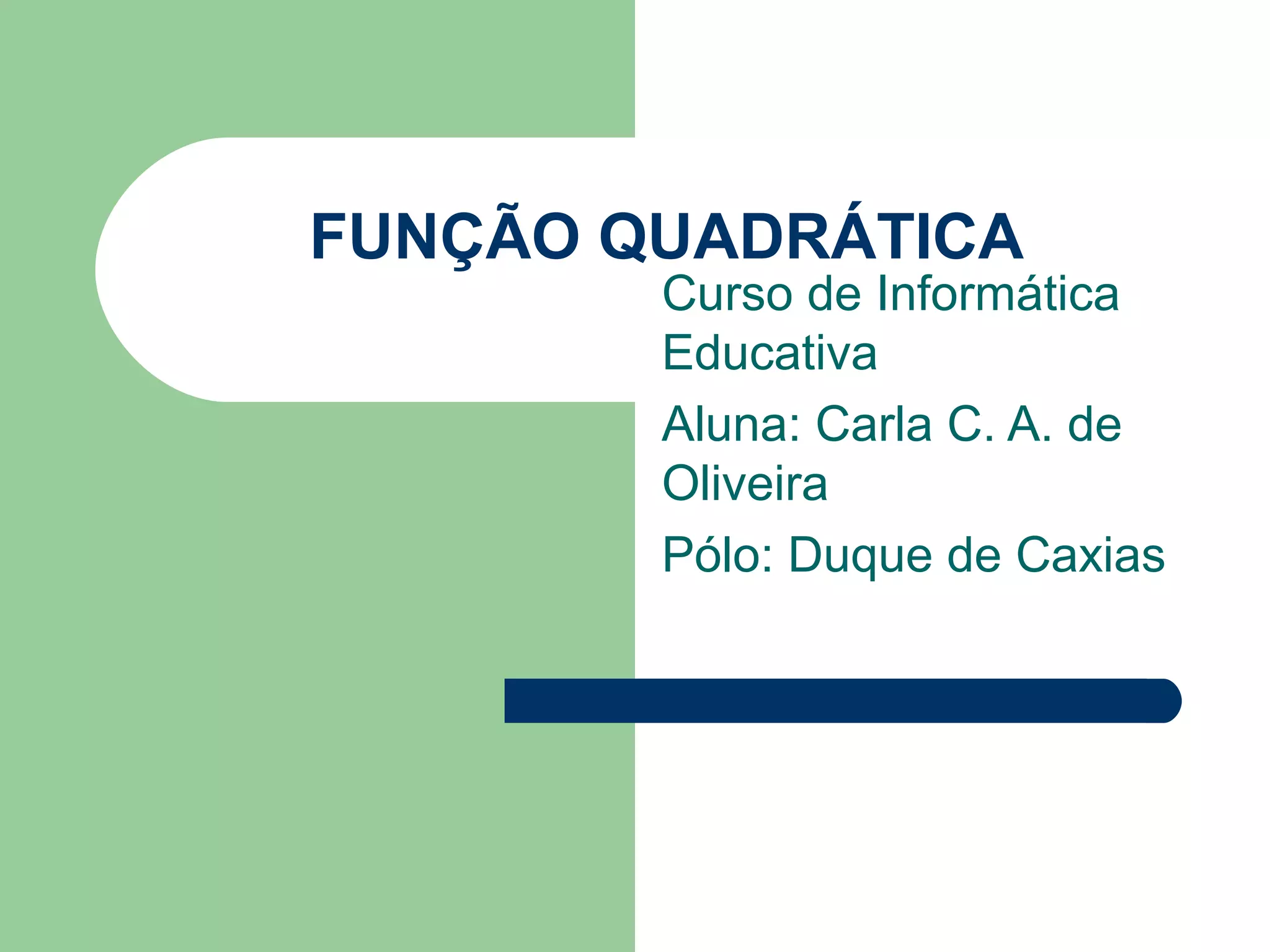 O documento descreve um curso sobre funções quadráticas, abordando conceitos como gráficos, vértice e zeros. Aprendizagem é feita através de aulas expositivas, resolução de exercícios e atividades no laboratório com software. O curso tem o objetivo de ensinar conceitos e aplicações de funções quadráticas.