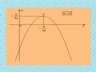 1) O documento define funções quadráticas como funções polinomiais do segundo grau da forma f(x) = ax2 + bx + c, onde a, b e c são números reais e a ≠ 0.