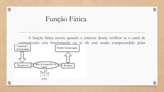 A função fática ocorre quando o emissor deseja verificar se o canal de comunicação está funcionando ou se está sendo compreendido. Exemplos incluem frases como "alô" e "entenderam?" e sons como "hum-hum" durante uma conversa. A função fática também é usada para iniciar uma comunicação ou manter o contato com o destinatário, como em "veja bem" ou "compreende?".
