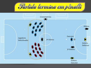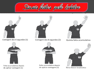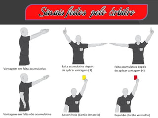 O documento descreve a origem e as regras básicas do futsal. O futsal surgiu como uma adaptação do futebol para quadras menores e usa uma bola mais pesada. É muito popular no Brasil e faz parte da Educação Física escolar. As equipes têm 5 jogadores e um goleiro, jogando em quadras retangulares.