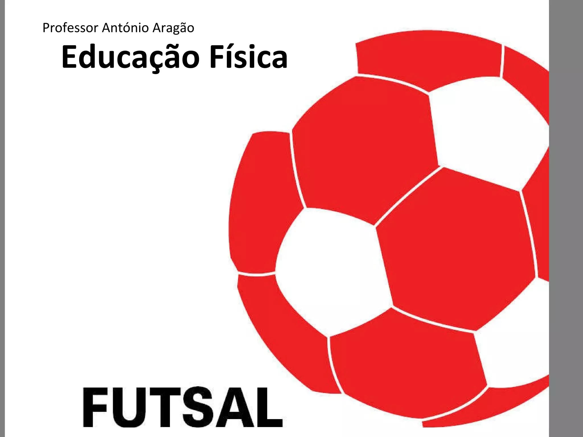 Este documento define o futsal, descrevendo sua origem na década de 1930 no Brasil como uma alternativa ao futebol de campo. Detalha as regras, gestos técnicos, arbitragem e outras curiosidades como as dimensões da quadra, peso e tamanho da bola, uso de cartões e substituições ilimitadas.