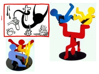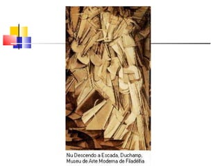 O documento descreve vários movimentos artísticos do século XX, incluindo o Futurismo, Dadaísmo, Op Art, Pop Art e o trabalho de artistas como Marcel Duchamp, Andy Warhol e Keith Haring.