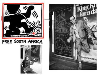 Nascido no estadode Pensilvânia cedo mostrou interesse pelas artes plásticas. De 1976 até 1978 estudou design gráfico numa escola de arte em Pittsburgh. Antes de acabar o curso, transfere-se para Nova Iorque, onde seria grandemente influenciado pelos graffitis, inscrevendo-se na School of Visual Arts . Homossexual assumido, o seu trabalho reflete também um conjunto de temas homo-eróticos. Keith Haring começou a ganhar notoriedade ao desenhar a giz nas estações de metro de Nova Iorque. As suas primeiras exposições formais acontecem a partir de 1980 no Club 57, que se torna um ponto de encontro da elite vanguardista. Na mesma década, participou em diversas bienais e pintou diversos murais pelo mundo - de Sydney a Amsterdão e mesmo no Muro de Berlim. Amigo pessoal de Grace Jones, foi ele quem lhe pintou o corpo para o videoclip "I'm Not Perfect". Em 1988, abre um Pop Shop em Tóquio. Na ocasião, afirma: " Em minha vida fiz muitas coisa, ganhei muito dinheiro e me diverti muito. Mas também vivi em Nova Iorque nos anos do ápice da promiscuidade sexual. Se eu não pegar AIDS, ninguém mais pegará. " Meses depois declara em entrevista à revista Rolling Stone que tem o vírus HIV. Em seguida, cria a Keith Haring Foundation , em favor das crianças vítimas da AIDS. Em 1989, perto da igreja de Sant'Antonio Abate , em Pisa , Itália, executa a sua última obra pública - o grande mural intitulado Tuttomondo [1], dedicado à paz universal. Haring morreu aos 31 anos de idade, vítima de AIDS, tendo sido um forte activista contra a doença, que abordou mais que uma vez em suas pinturas.