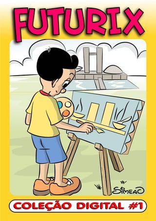 Este documento é uma revista de quadrinhos chamada Futurix que contém histórias em quadrinhos, tutoriais de animação, piadas e informações de contato do editor. A próxima edição promete conter uma viagem no tempo maluca, um clássico confronto entre Pernetas e Mongolóides e uma trolagem hilária.