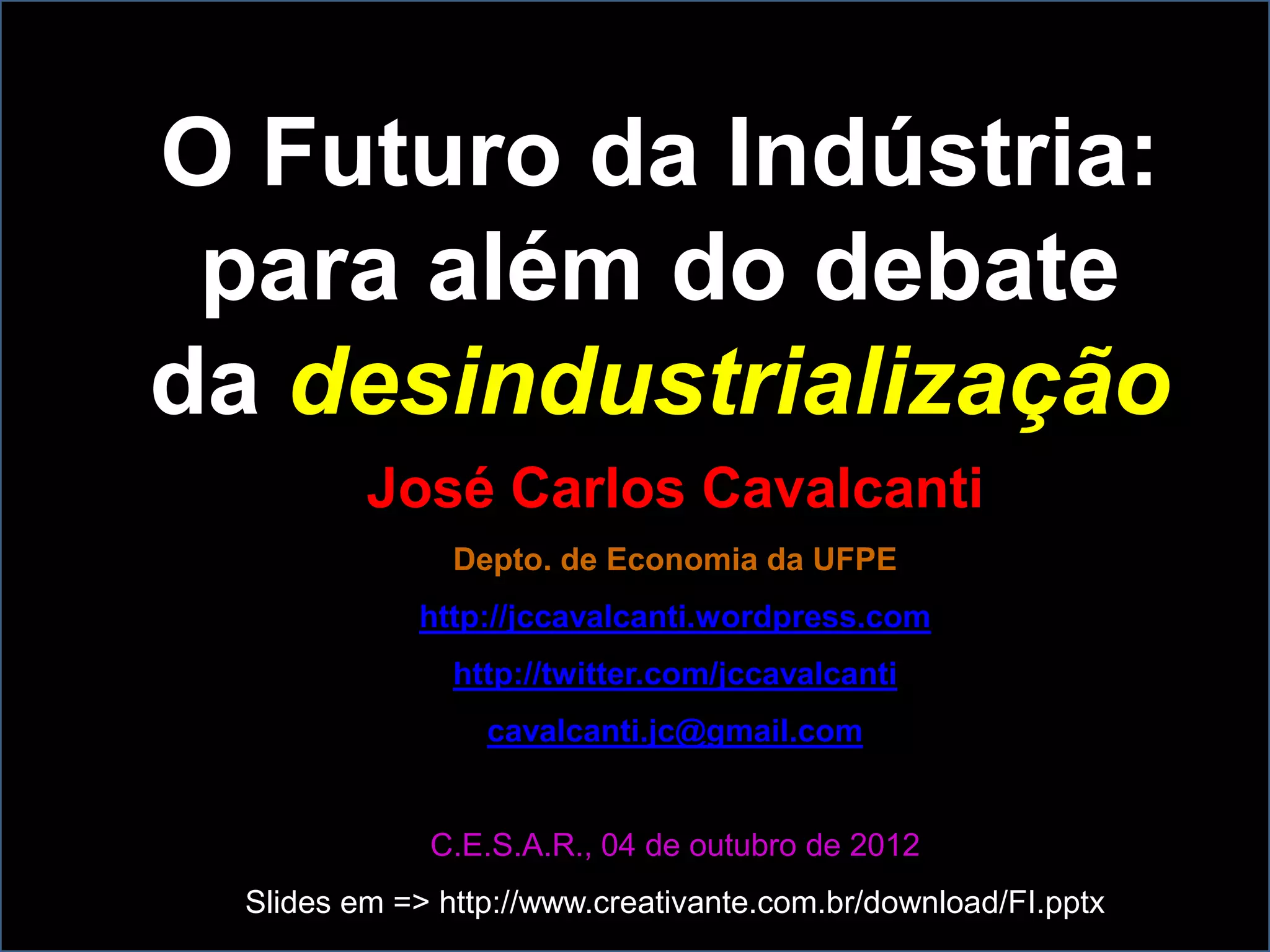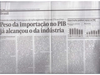 I - O documento discute o debate sobre desindustrialização no Brasil e argumenta que o que estamos enfrentando é a combinação da globalização da indústria de transformação e a internacionalização do P&D corporativo.