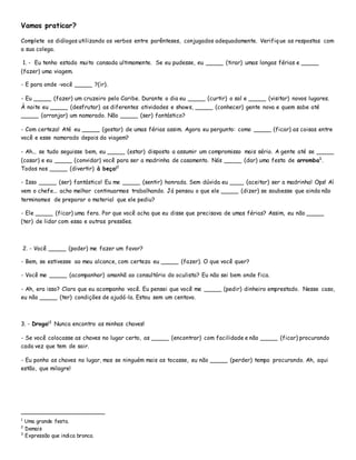 O documento descreve o futuro do pretérito no português, também conhecido como condicional. Explica sua formação em verbos regulares e irregulares e os usos do futuro do pretérito, incluindo falar sobre eventos futuros em relação ao passado, frases condicionais, hipóteses, surpresa, indignação e sugestões.