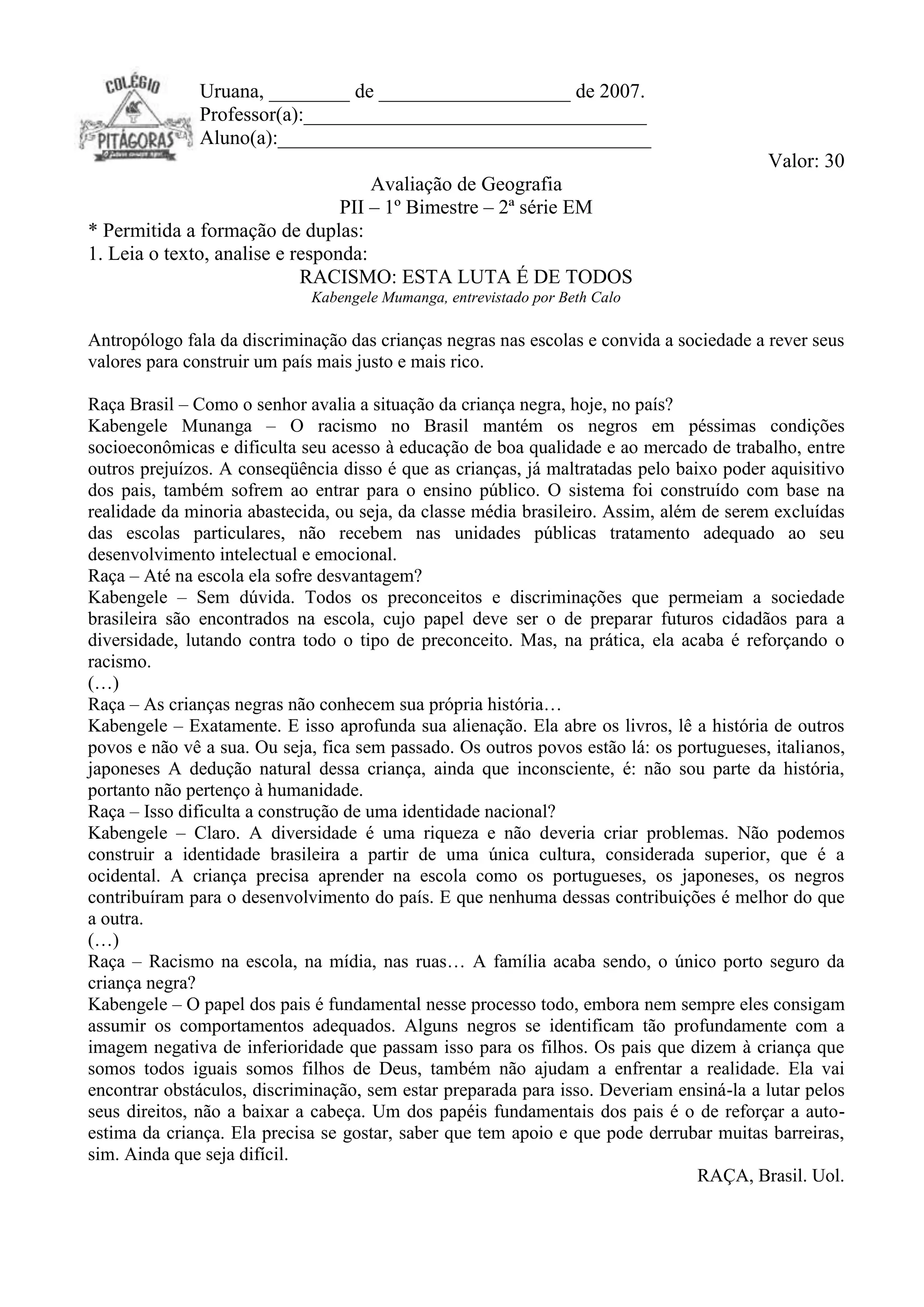 O documento discute o racismo na educação brasileira. Segundo o antropólogo Kabengele Munanga: