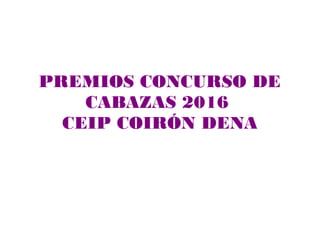 O documento lista os prêmios concedidos no concurso de cabazas de 2016 da escola CEIP Coirón Dena, incluindo prêmios para a melhor pintura e escultura por ciclo escolar, bem como prêmios para as obras mais originais.