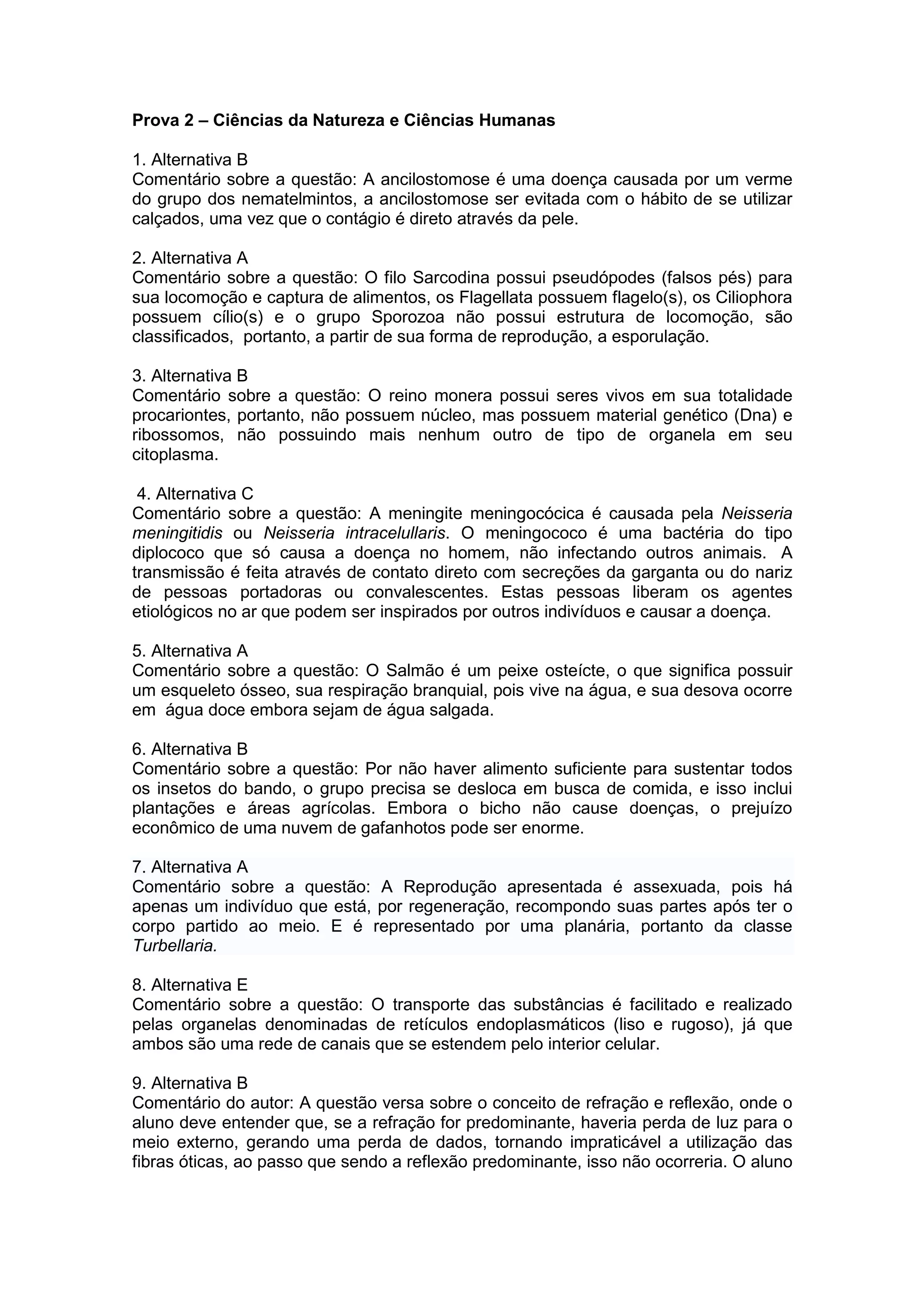Prova 2 –Ciências da Natureza e Ciências Humanas