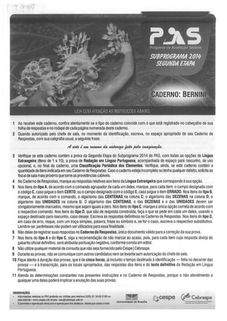 Gabarito PAS 2, subprograma 2014, caderno Bernini