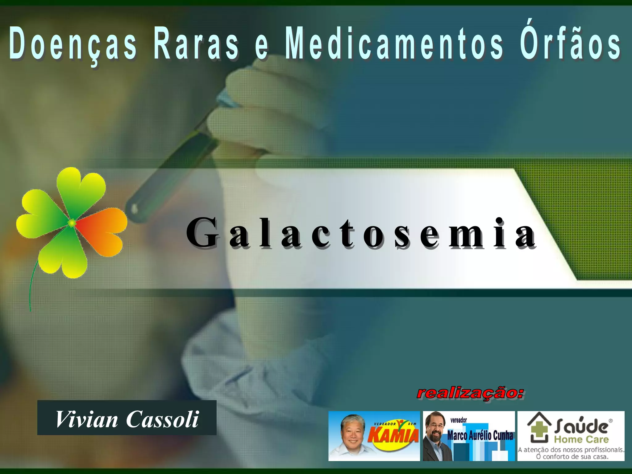 A galactosemia é uma doença genética causada pela deficiência da enzima galactose-1-fosfato uridil transferase, que impede o metabolismo do açúcar galactose presente no leite. Os principais sintomas são vômitos, aumento do fígado e coloração amarelada da pele em recém-nascidos. O tratamento envolve retirar completamente o leite e seus derivados da dieta.