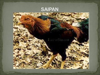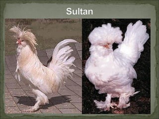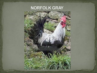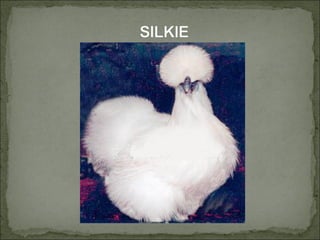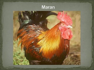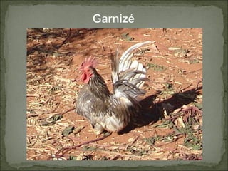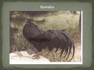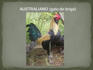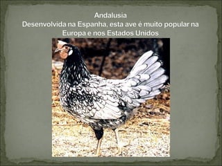 O documento resume a origem e história da galinha doméstica. A galinha tem origem na Ásia e há evidências de sua presença na China há 1.400 anos a.C. e no Egito de forma remota. A galinha se espalhou da Ásia para a Europa levada pelos gregos antigos e polinésios e foi criada em diversas raças por meio de cruzamentos.