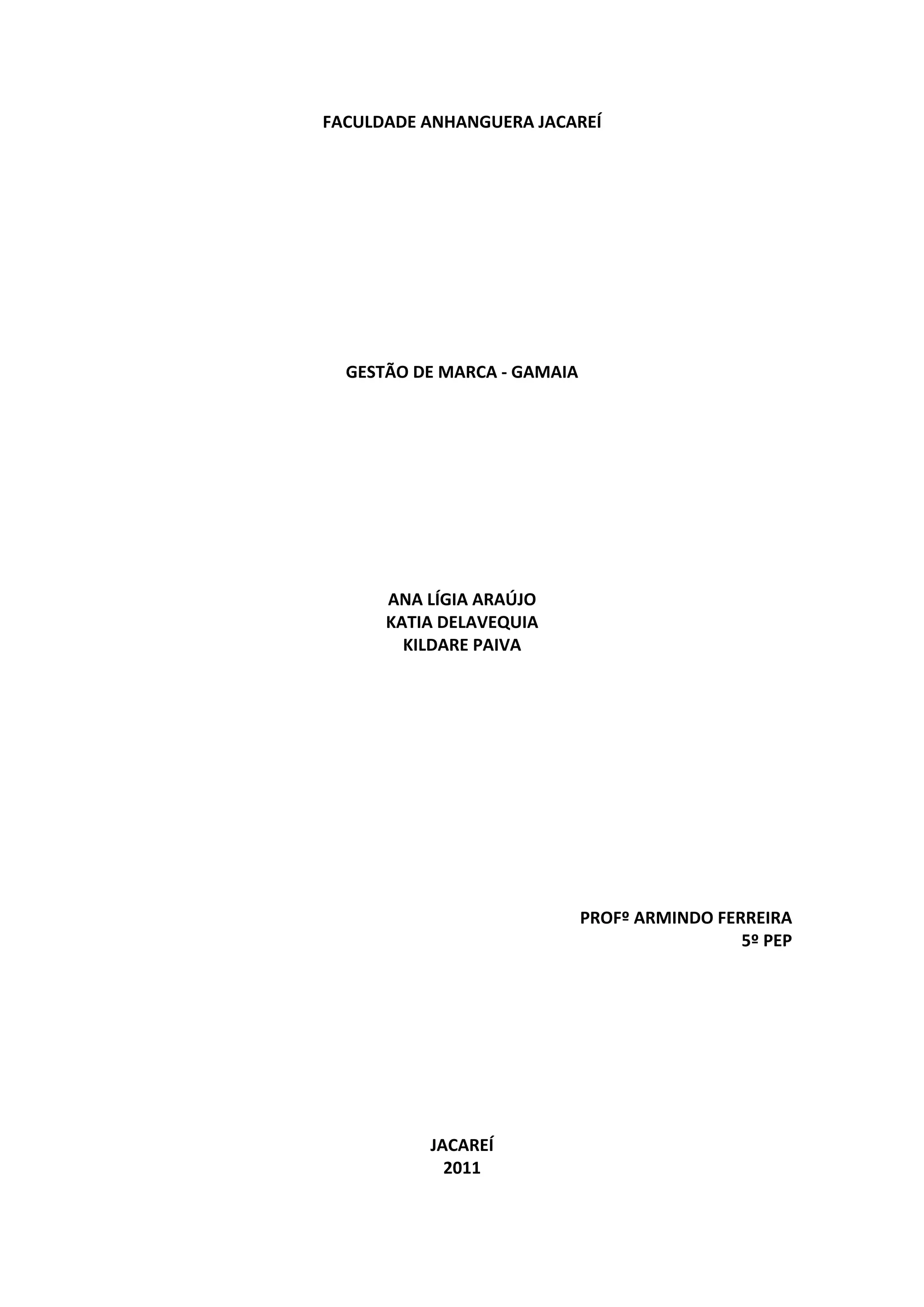 O documento descreve a história e operações da loja esportiva Gamaia, incluindo sua fundação em 2006, expansão para 5 lojas físicas e 1 virtual, variedade de produtos oferecidos, eventos promovidos, presença em redes sociais e agência responsável pela gestão da marca. A Gamaia se posiciona como uma loja especializada para amantes de esporte, focada em bem-estar e qualidade de vida.