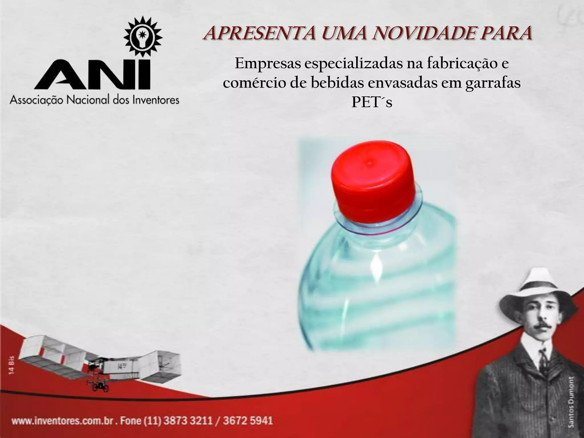 O documento apresenta um projeto de garrafas PET modulares de encaixe, que permitem a construção de estruturas através do encaixe das garrafas. O projeto visa ampliar o uso das garrafas PET para além de vasilhames, permitindo a construção de móveis, brinquedos e estruturas com baixo custo. A invenção pode ser licenciada ou vendida para empresas interessadas em investir na sustentabilidade e reaproveitamento do plástico PET.