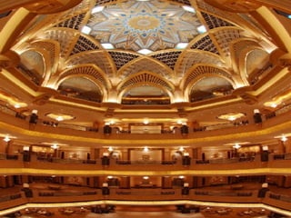 O documento apresenta fotos de uma casa luxuosa pertencente à família do ex-presidente dos Emirados Árabes Unidos e também mostra um carro Audi A8 totalmente feito de prata, comentando que esses bens de luxo podem ser adquiridos quando a gasolina custa US$ 2,75 o galão.