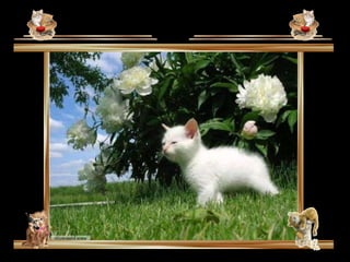 Gatos manhosos são apresentados para trazer amor e alegria para a vida das pessoas. Fotos de gatos fofos e bebês são mostradas para alegrar o dia. A música suave de fundo cria uma atmosfera calmante.
