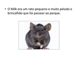 O rato Milk foi passear no parque e encontrou o gato Boly, que o convidou para dar uma volta. Eles foram juntos e foram felizes para sempre.