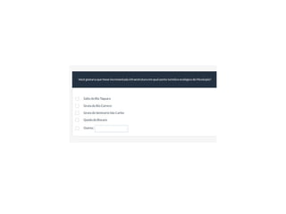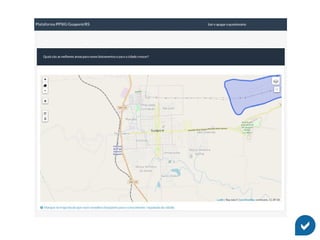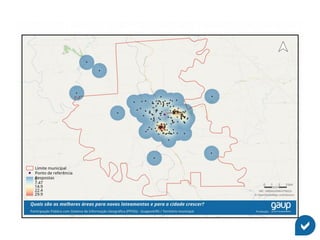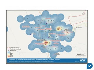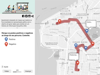 O documento discute como ferramentas de mapeamento podem representar melhor a percepção cidadã para aprimorar a análise de dados. Ele introduz o GAUPSurvey, uma plataforma baseada em mapas e questionários que explora interação e representação para gerar dados espaciais e analisá-los em um Sistema de Informação Geográfica, com potencial para apoiar processos participativos e informar tomadas de decisão.