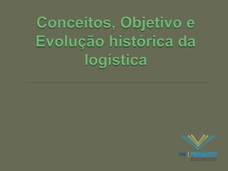 O documento discute os conceitos de logística e custos logísticos. Apresenta a evolução histórica da logística, desde sua concepção inicial ligada à guerra até se tornar estratégica para empresas, com foco em integração entre elos da cadeia de suprimentos. Também diferencia custos e despesas e explica que os custos logísticos incluem armazenagem, estoques, transporte e processamento de pedidos, sendo um dos principais itens de gasto para empresas.