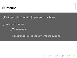 O documento discute um curso de Gestão do Desporto I em uma escola superior em Rio Maior, Portugal. Ele lista o título da aula 7 e datas para relatórios e revisões periôdicas dos alunos.