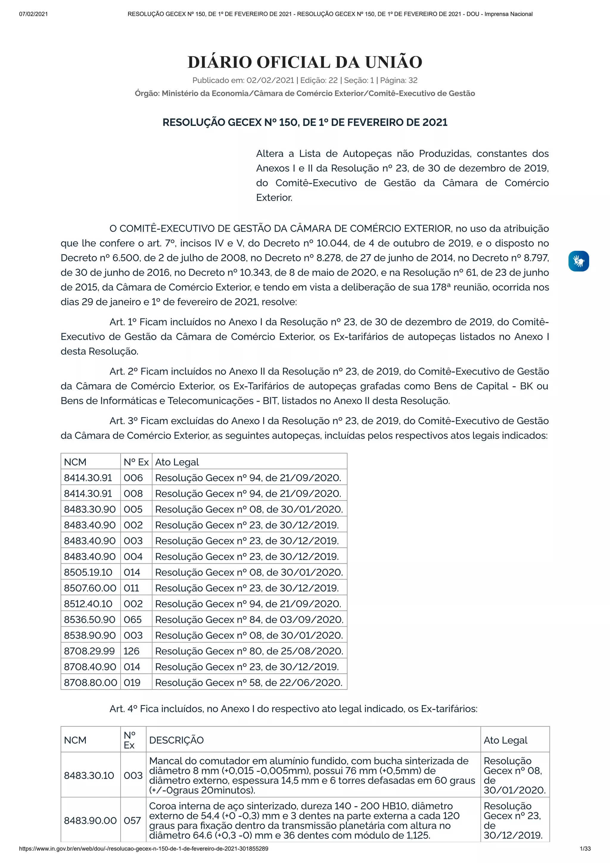 https://www.in.gov.br/en/web/dou/-/resolucao-gecex-n-150-de-1-de-fevereiro-de-2021-301855289 1/33