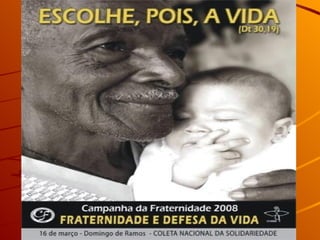 2) A Campanha da Fraternidade de 2008 tem como tema "Fraternidade e Defesa da Vida" e como lema "Escolhe, pois, a vida".
