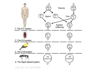Sistema XO: Variante do sistema XY, ocorre em hemípteros (percevejos) e Ortópteros (gafanhotos). Nesse caso a presença de um único X (ausência do Y) caracteriza o sexo masculino.