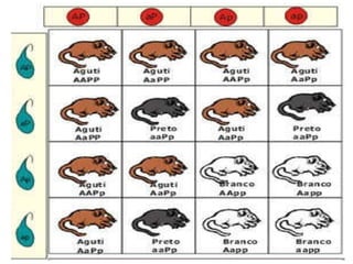 O documento resume os principais conceitos da genética de Mendel, incluindo suas experiências com ervilhas e as leis da herança. Também aborda os sistemas sanguíneos ABO e Rh, tipos de resposta imune e alguns conceitos básicos sobre imunização.