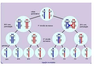 Na formação dogametas pode ocorrer crossing-over ( recombinação gênica ), fato esse que altera as proporções esperadas de gametas e portanto de descendentes: