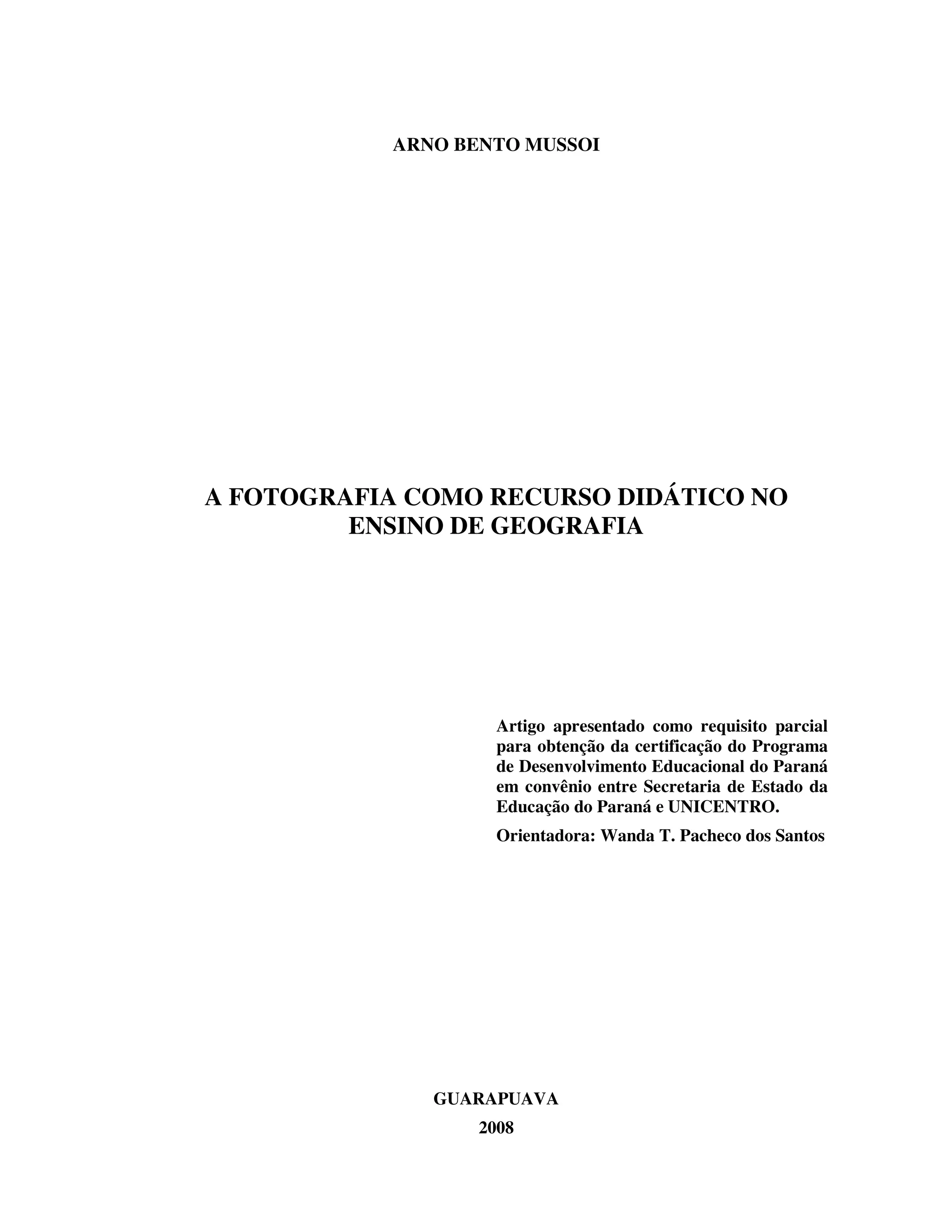 Este documento apresenta uma proposta de roteiro metodológico para utilizar a fotografia como recurso didático no ensino de Geografia. O roteiro é baseado na experiência do autor como professor e em estudos sobre o tema. Ele sugere procedimentos para análise e interpretação de fotografias ligadas a conteúdos geográficos de forma a enriquecer o processo de ensino-aprendizagem.