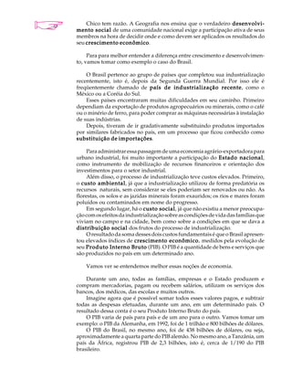 2) Fala sobre os custos ambientais e sociais da industrialização brasileira e as disparidades regionais de renda.