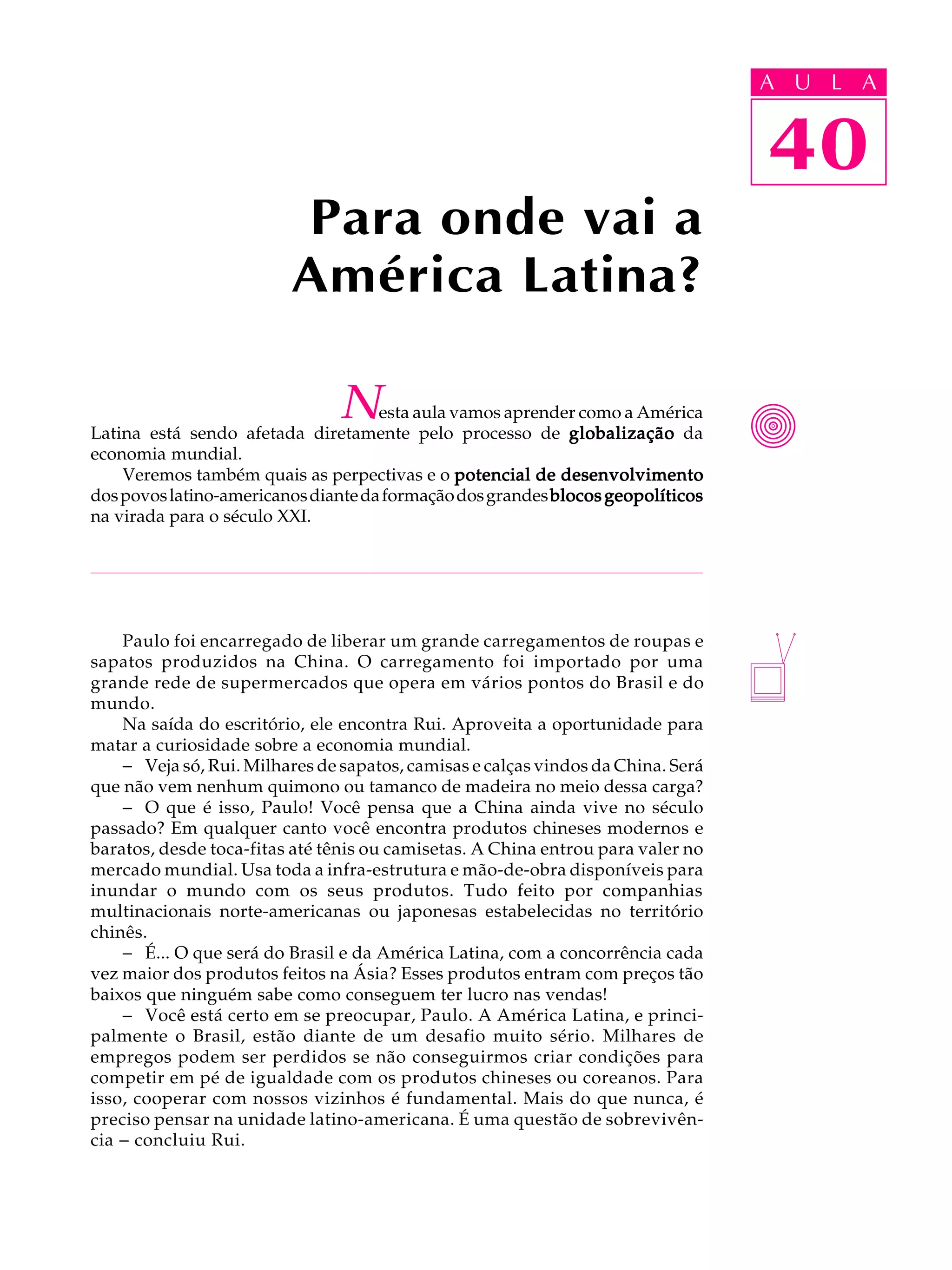A U LA A América Latina, que estudamos neste módulo, está em uma encruzilhada