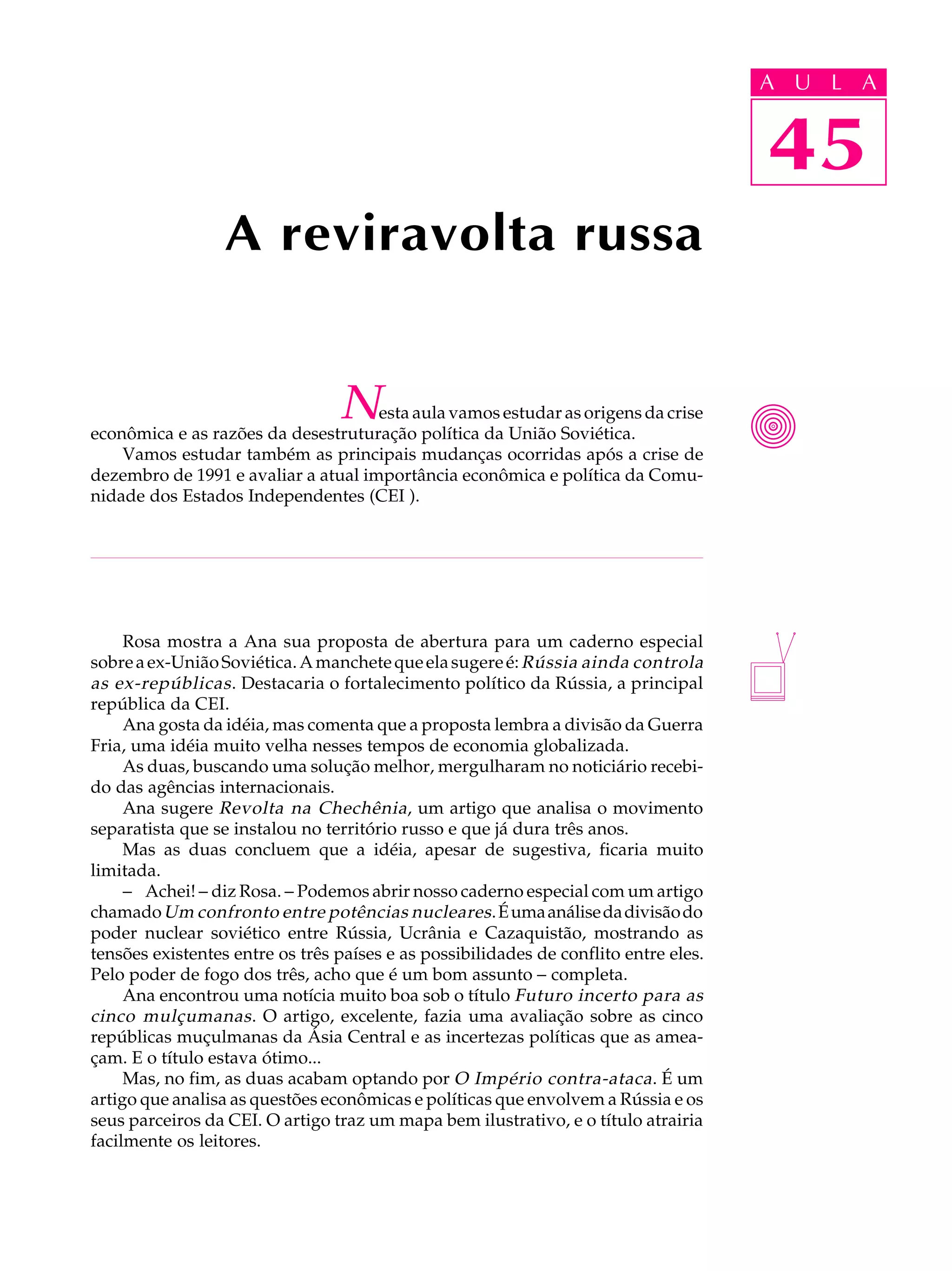 O documento discute a dissolução da União Soviética e as consequências políticas e econômicas para as repúblicas que a compunham. Analisa as tensões entre Rússia, Ucrânia e Cazaquistão sobre o poder nuclear e as incertezas políticas que ameaçam as cinco repúblicas muçulmanas da Ásia Central. Também aborda a proposta de um artigo sobre os desafios econômicos e políticos enfrentados pela Rússia e seus parceiros da CEI.