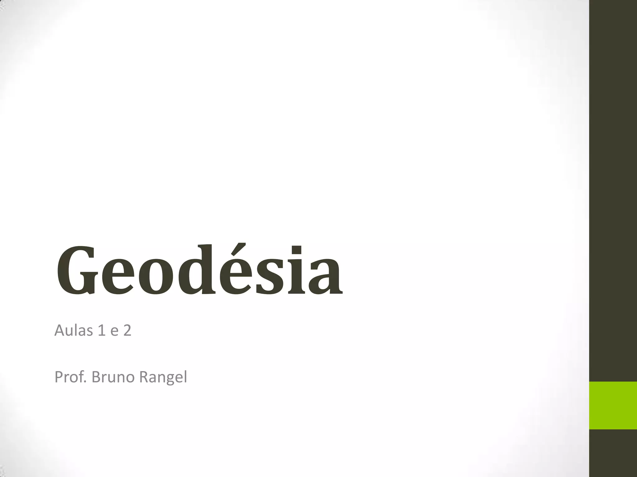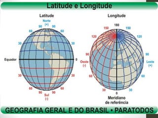 O documento discute os principais tópicos de geodésia, incluindo a rotação e translação da Terra, solstícios e equinócios, orientação e localização, coordenadas geográficas e fusos horários.