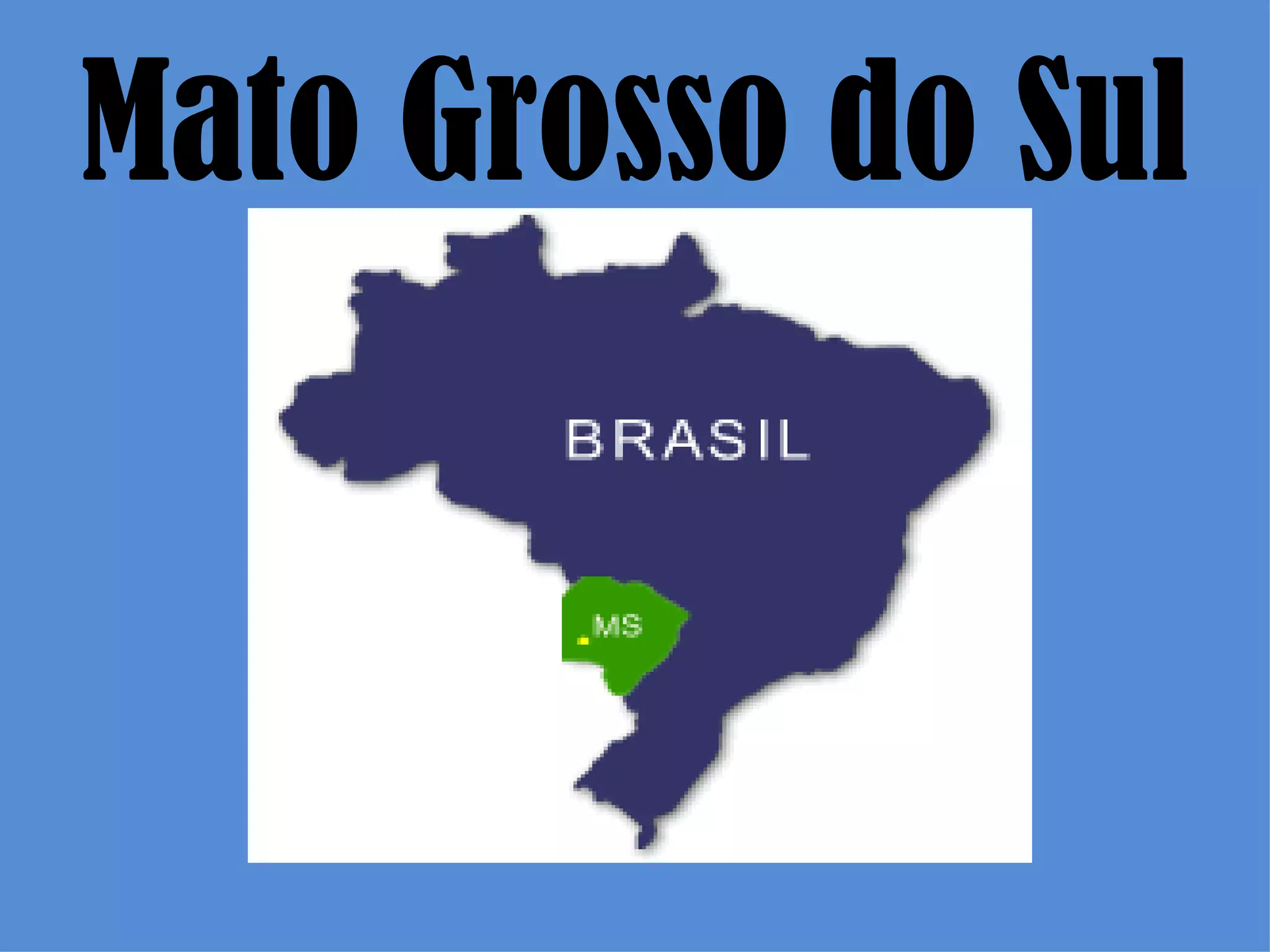 Mato Grosso do Sul é um estado localizado na região Centro-Oeste do Brasil, com clima tropical e relevo que inclui planaltos e chapadões. Sua economia é baseada na agricultura e pecuária, especialmente de gado bovino. Pontos turísticos notáveis incluem o Pantanal e as cidades de Bonito, com grutas e cachoeiras, e Campo Grande, a capital.