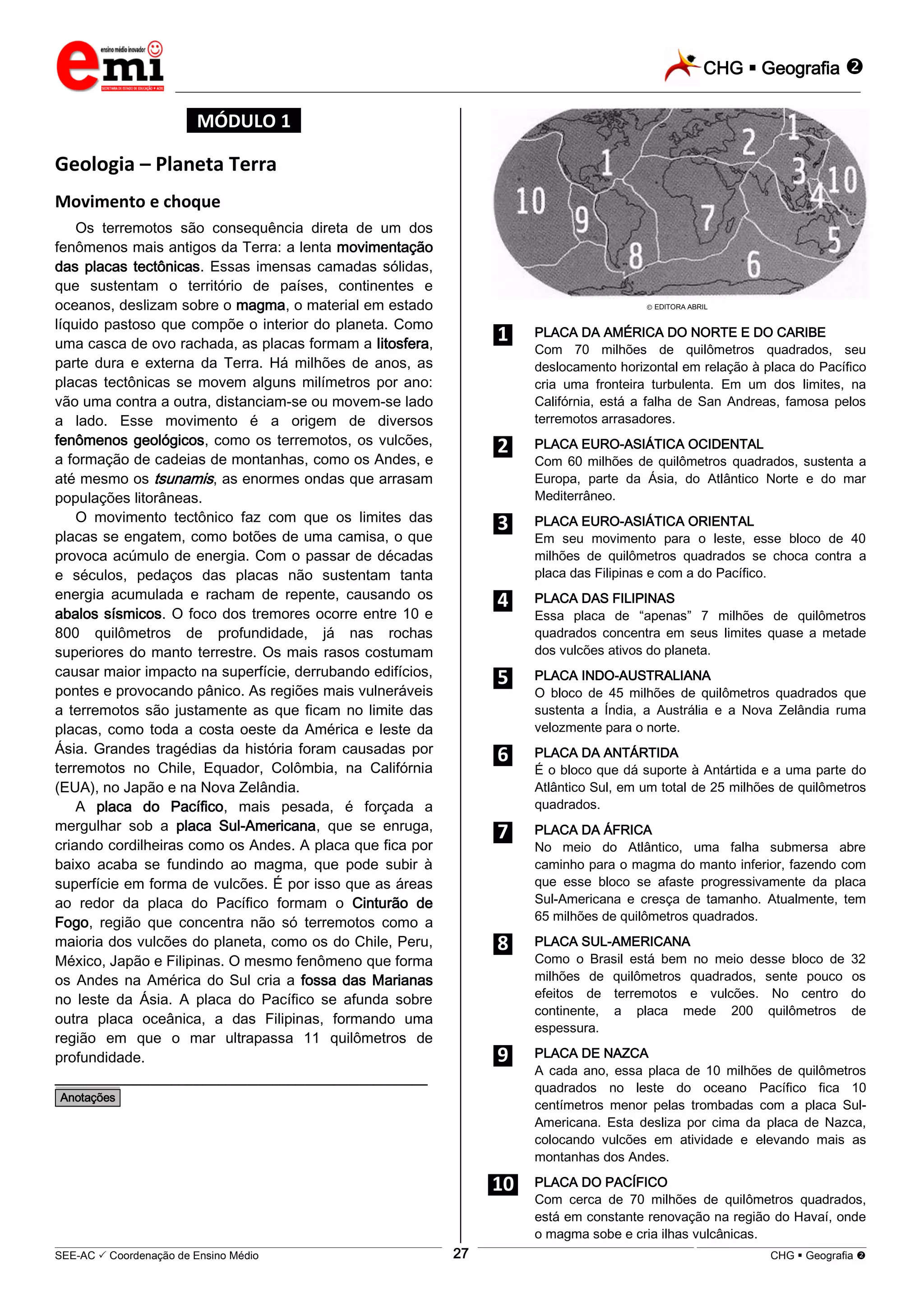1) Os terremotos são consequência da movimentação das placas tectônicas, que se aproximam, distanciam ou deslizam lateralmente há centenas de milhões de anos.