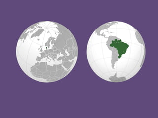 Este documento compara a Dinamarca e o Brasil em vários aspectos como história, localização, clima, relevo, hidrografia, vegetação, demografia e economia. A Dinamarca é um país desenvolvido localizado na Europa com clima temperado e economia baseada em serviços e indústria. Já o Brasil é um país em desenvolvimento localizado na América do Sul com clima tropical e economia agrícola em transição para a industrialização.
