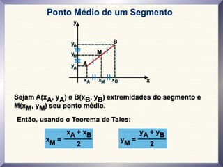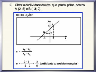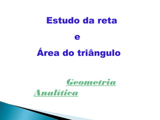 O documento resume os principais tópicos de uma aula de geometria analítica, incluindo equação da reta, área do triângulo, ponto médio e distância entre dois pontos. O professor que ministrou a aula foi Gledson Guimarães.
