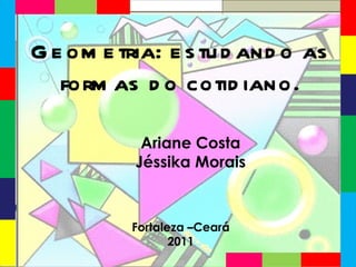 Este documento descreve uma atividade didática de 50 minutos para alunos do 5o ano do ensino fundamental sobre geometria. Os objetivos são reconhecer formas bidimensionais e tridimensionais presentes no cotidiano e distinguir poliedros de não-poliedros. O professor fará perguntas iniciais e apresentará o assunto antes dos alunos explorarem o recurso educacional virtual "Geometria" individualmente.
