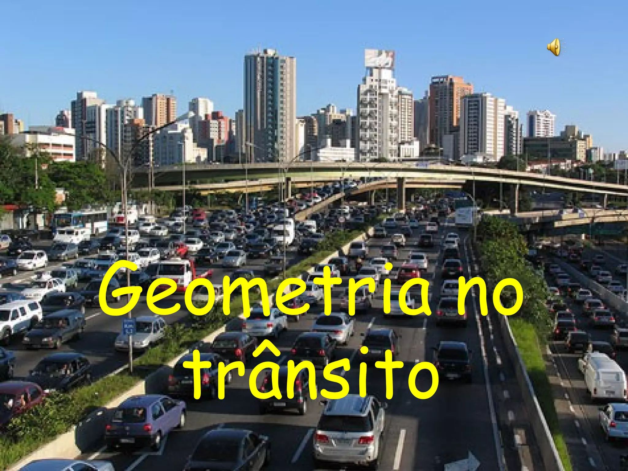 O documento discute como vários conceitos geométricos como retas, planos, círculos e polígonos estão presentes no trânsito, seja em placas de sinalização, semáforos, faixas de rodovia, trilhos de trem e mais.