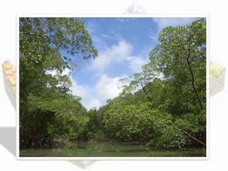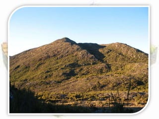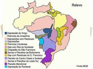 O documento descreve a geomorfologia do território brasileiro, que possui terrenos geológicos muito antigos e diversificados devido à sua extensa área. O Brasil não possui cadeias montanhosas modernas como os Andes ou Himalaia, resultando em altitudes moderadas. As rochas mais antigas formam áreas de escudo cristalino, proporcionando estabilidade geológica ao território.