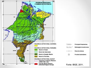 O documento aborda a classificação do relevo maranhense, apresentando as contribuições de diversos autores e a evolução dos conceitos ao longo dos anos. Destacam-se as características dos diferentes tipos de relevo, como planaltos, planícies e superfícies, e as interações entre as formações geográficas e os ambientes naturais. As informações são baseadas em fontes do IBGE e outros estudos de geografia e história regionais.