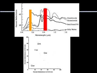 O documento descreve o comportamento espectral de diferentes alvos, como solo, vegetação e água. A reflectância desses alvos é afetada por fatores como umidade, composição mineral, granulometria e conteúdo de matéria orgânica. A resposta espectral varia entre as diferentes faixas do espectro eletromagnético, possibilitando distinguir os alvos.
