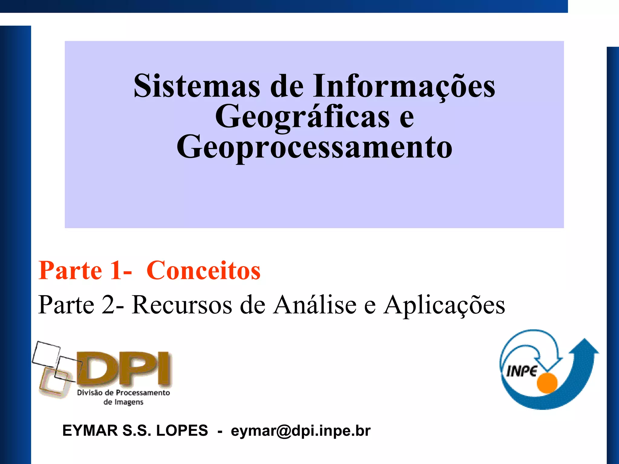 O documento discute conceitos de sistemas de informações geográficas e geoprocessamento, incluindo definições, modelagem de dados espaciais, projeções cartográficas e representações computacionais de mapas. Aborda também os diferentes universos de dados espaciais e como eles são representados em sistemas de geoprocessamento.
