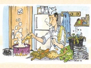 O documento discute conceitos básicos de higiene e manipulação de alimentos para prevenção de doenças transmitidas por alimentos. Apresenta informações sobre os principais tipos de contaminação de alimentos e microrganismos, e métodos de conservação de alimentos como refrigeração, cozimento, salga e defumação.