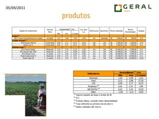 ProdutosComentário do mercadoGiro econômicoIndicadores financeirosIbovespaFluxo estrangeiroAgendaEstratégia técnicaProventosGeral Investimentos   www.geralinvestimentos.com.brFone: 51 3213 2704E-mail: ci@geralinvestimentos.com.br