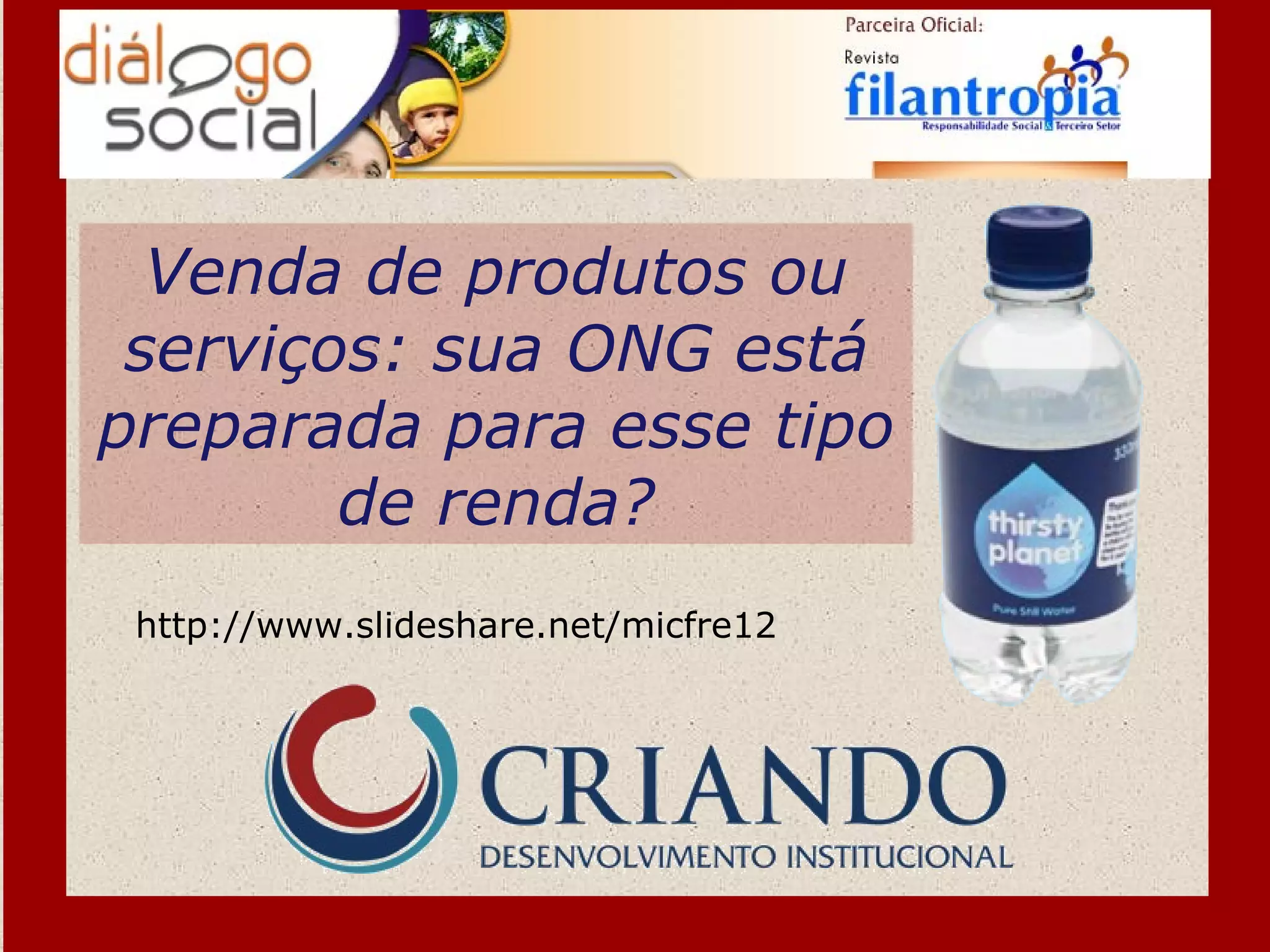 O documento discute estratégias de geração de renda para ONGs, incluindo a venda de produtos e serviços. Apresenta diversas fontes potenciais de recursos e receita, como doações, eventos, parcerias e projetos de geração de renda. Discutem-se também aspectos jurídicos e tributários relacionados à atividade econômica de organizações sem fins lucrativos.